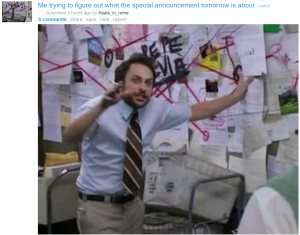 Nothing plays in the cryptoverse like rumors and news. The EOS reddit thread and other chat forums have few details and much speculation about exchange listings, airdrops, etc so we will spare passing along any rumors we cannot confirm. The announcement is coming at the first official meet-up in Seoul later today with 866 of 900 slots already registered. For those in Seoul, details can be found here at the meet-up page with locations, times and list of attendees who have registered. Meanwhile Reddit user Keats_in_rome has taken a more light-hearted approach to the speculation in trying to figure out the announcement. Of course nothing is official from the EOS reddit page but after the announcement certainly details can be found over there.