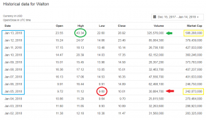 On January 14th, we saw an all-day struggle from Walton trying to keep its price above $25usd/WTC. The supports being persistent are trying hard to make it clear that this is now the lowest point you can enter the project.