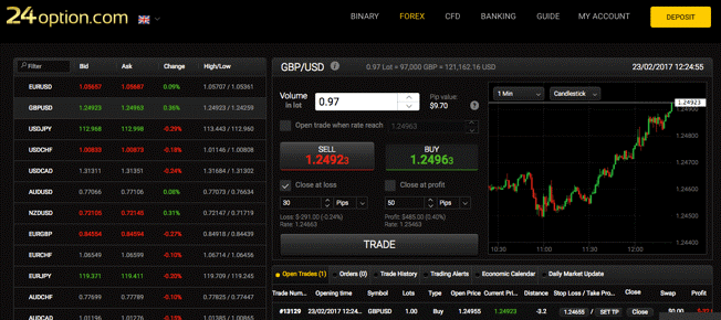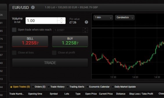 Choose the trading pair you wish to trade (in the above example it is EUR/USD, but when trading Bitcoin it will be BTC/USD); choose the volume of the asset you wish to buy or sell and hit “BUY” or “SELL”. You can also set stop losses and take-profit orders.