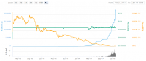 Taking a look at Tether’s chart on CoinMarketCap, we can see that it’s price is around $1 USD regardless of their total market cap, which is the main reason a token’s price would go up or down. Tether officials have stated over the past months that they base their token supply on an amount of Fiat Currency they currently possess, but there are concerns about this statement as there is no legal confirmation supporting that fact and numbers.